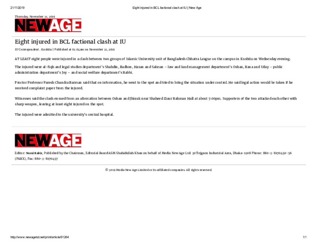 Eight injured in BCL factional clash at IU _ New Age Published on Newspaper New Age Category Campus Terrorism Download