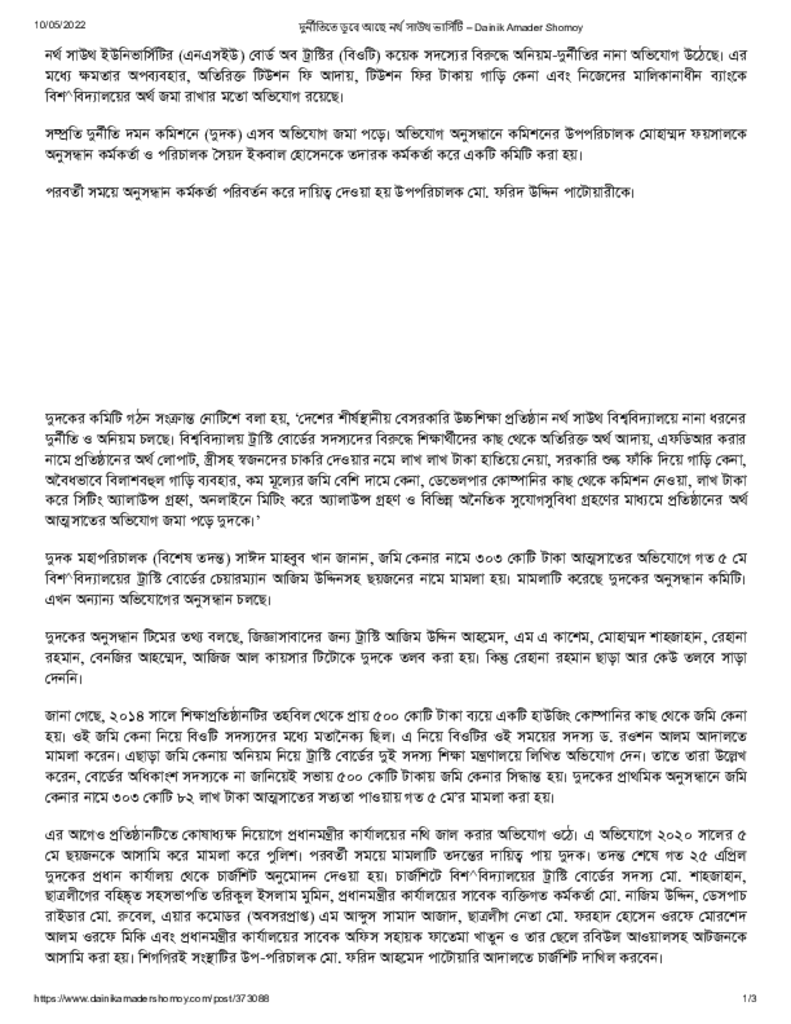 দুর্নীতিতে ডুবে আছে নর্থ সাউথ ভার্সিটি – Dainik Amader Shomoy Published on 10 May 2022 Newspaper দৈনিক আমাদের সময় Category General Education General Education Higher Education Private Download