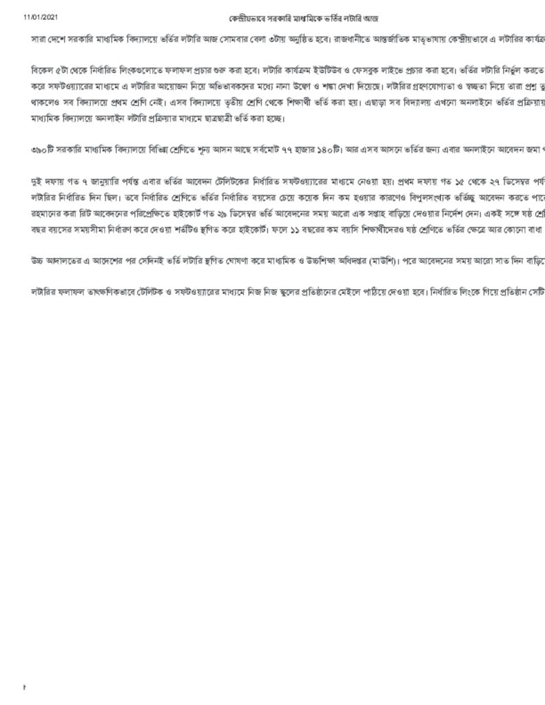 কেন্দ্রীয়ভাবে সরকারি মাধ্যমিকে ভর্তির লটারি আজ
