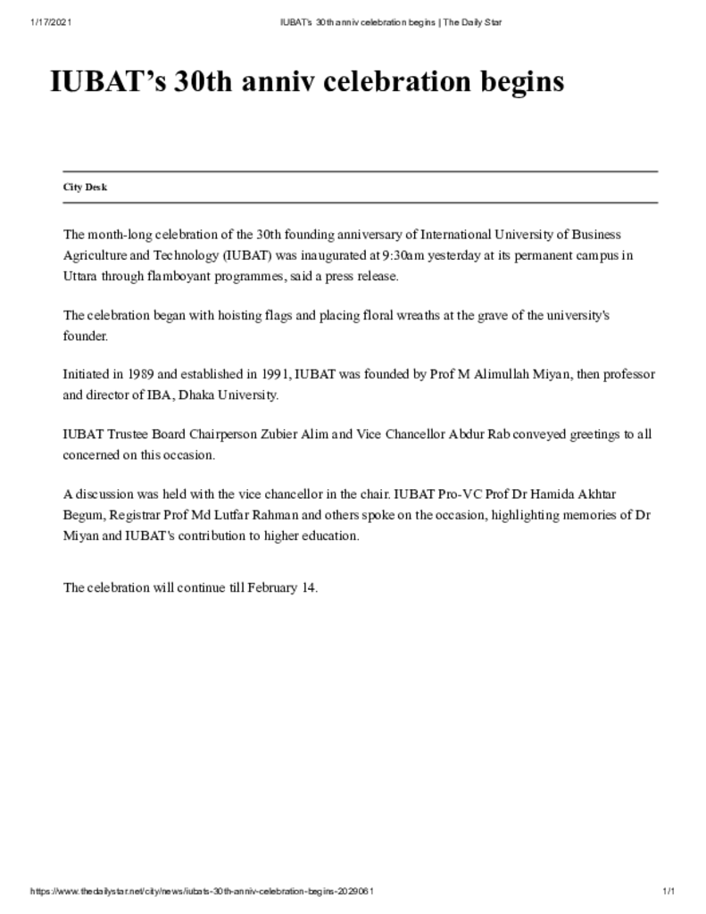 IUBAT’s 30th anniv celebration begins _ The Daily Star