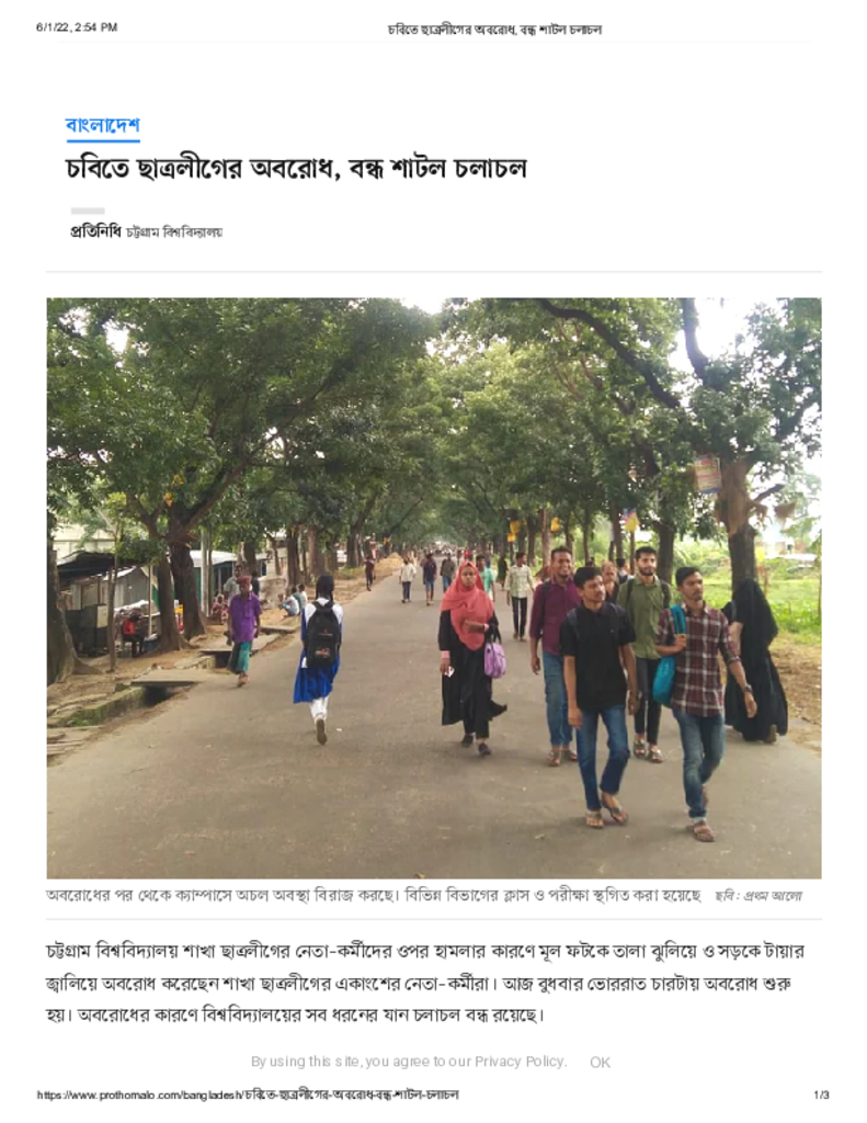 চবিতে ছাত্রলীগের অবরোধ, বন্ধ শাটল চলাচল Published on 01 June 2022 Newspaper দৈনিক প্রথম আলো Category Campus Terrorism Download