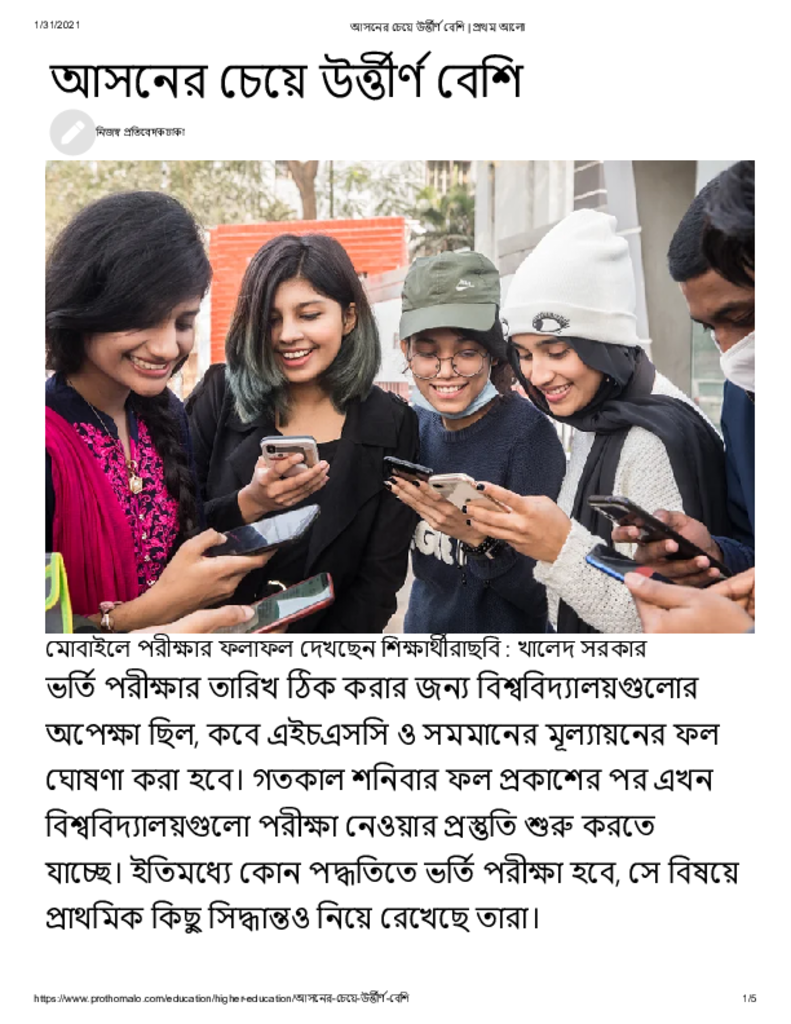 আসনের চেয়ে উর্ত্তীর্ণ বেশি _ প্রথম আলো Published on 31 January 2021 Newspaper দৈনিক প্রথম আলো Category Public Examination Public Examination HSC Download