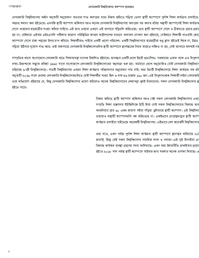 বেসরকারি বিশ্ববিদ্যালয় ক্যাম্পাস স্থানান্তর Published on 17 February 2021 Newspaper দৈনিক ইত্তেফাক Category General Education General Education Higher Education Private Download