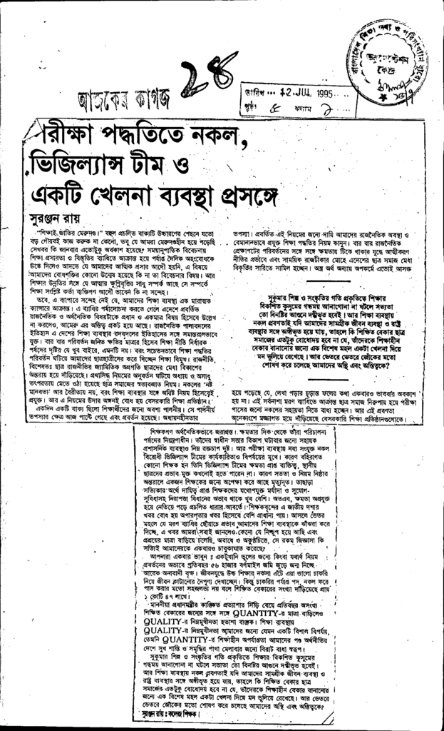 পরীক্ষা পদ্ধতিতে নকল, ভিজিল্যান্স টীম ও একটি খেলনা ব্যবস্থা প্রসঙ্গে Published on Newspaper দৈনিক আজকের কাগজ Category General Education Download