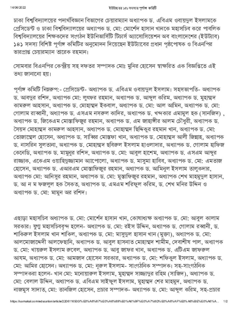 ইউট্যাবের ১৪১ সদস্যর পূর্ণাঙ্গ কমিটি Published on 14 June 2022 Newspaper দৈনিক সমকাল Category General Education General Education Higher Education Private Download