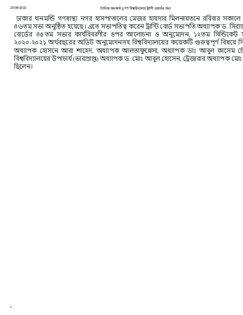 দৈনিক জনকন্ঠ __ গণ বিশ্ববিদ্যালয় ট্রাস্টি বোর্ডের সভা