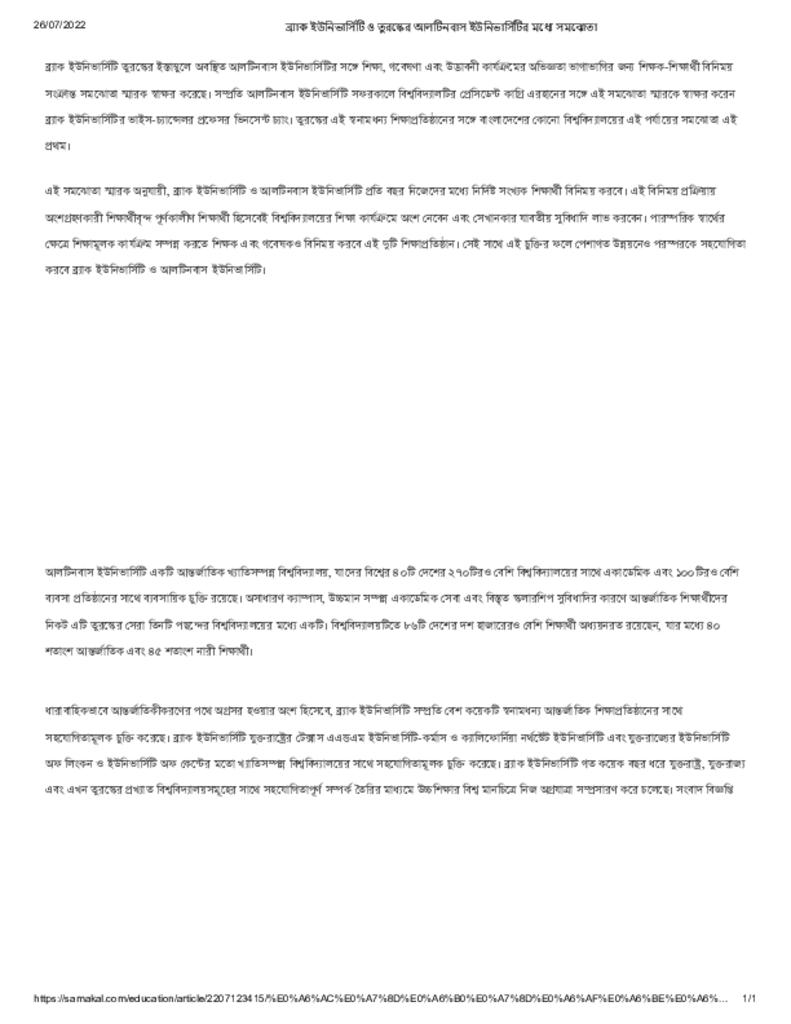 ব্র্যাক ইউনিভার্সিটি ও তুরস্কের আলটিনবাস ইউনিভার্সিটির মধ্যে সমঝোতা Published on 26 July 2022 Newspaper দৈনিক সমকাল Category General Education General Education Higher Education Private Download