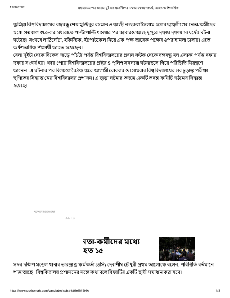 মধ্যরাতের পর আবার দুই হল ছাত্রলীগের দফায় দফায় সংঘর্ষ, আহত অর্ধশতাধিক Published on 11 September 2022 Newspaper দৈনিক প্রথম আলো Category Campus Terrorism Download