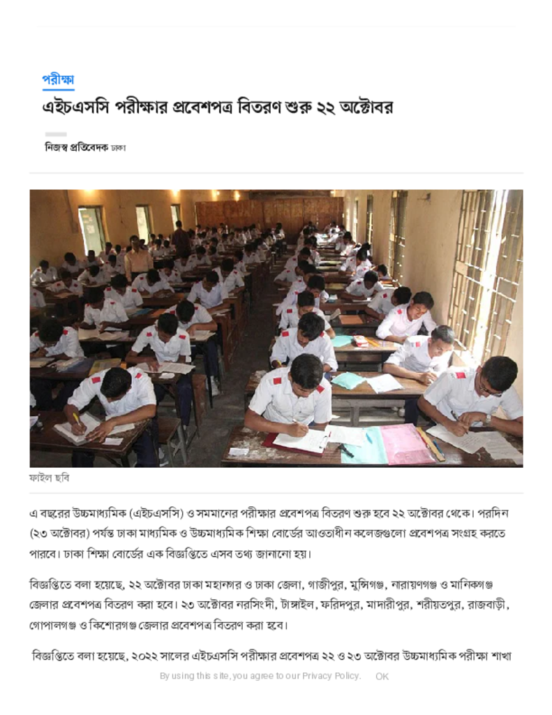 এইচএসসি পরীক্ষার প্রবেশপত্র বিতরণ শুরু ২২ অক্টোবর Published on 15 October 2022 Newspaper দৈনিক প্রথম আলো Category Public Examination Public Examination HSC Download