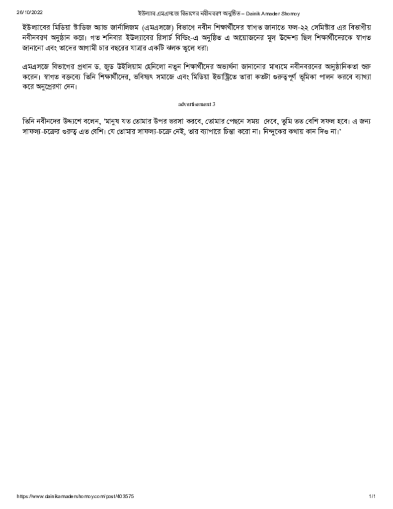 ইউল্যাব এমএসজে বিভাগের নবীনবরণ অনুষ্ঠিত – Dainik Amader Shomoy Published on 26 October 2022 Newspaper দৈনিক আমাদের সময় Category General Education General Education Higher Education Private Download