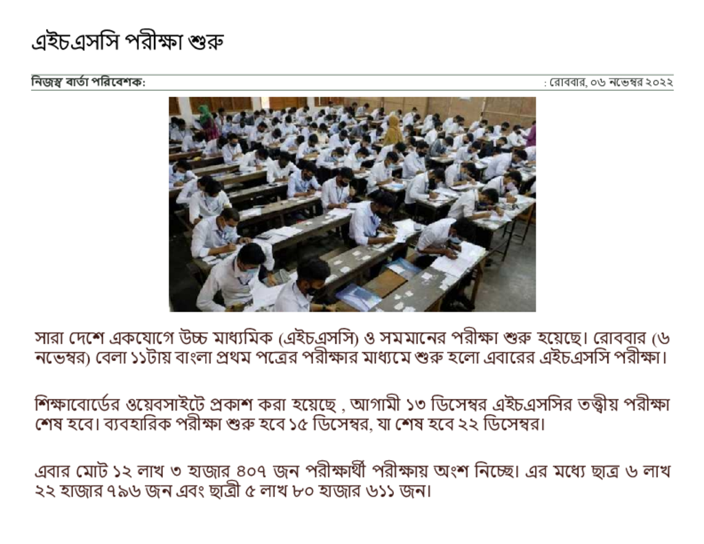 এইচএসসি পরীক্ষা শুরু _ সংবাদ অনলাইন