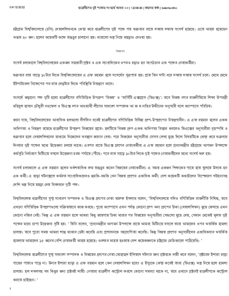 ছাত্রলীগের দুই পক্ষের সংঘর্ষে আহত ২০