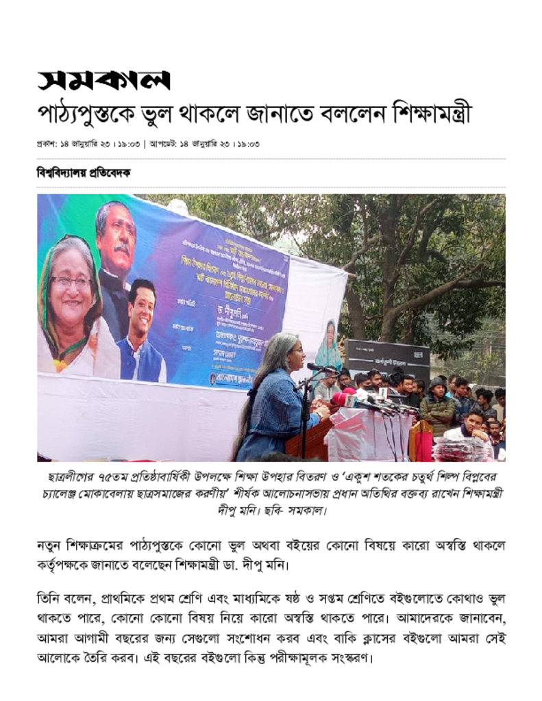 পাঠ্যপুস্তকে ভুল থাকলে জানাতে বললেন শিক্ষামন্ত্রী.pdf Published on 14 January 2023 Newspaper দৈনিক সৈকত Category Educational Ministry / Departments Download