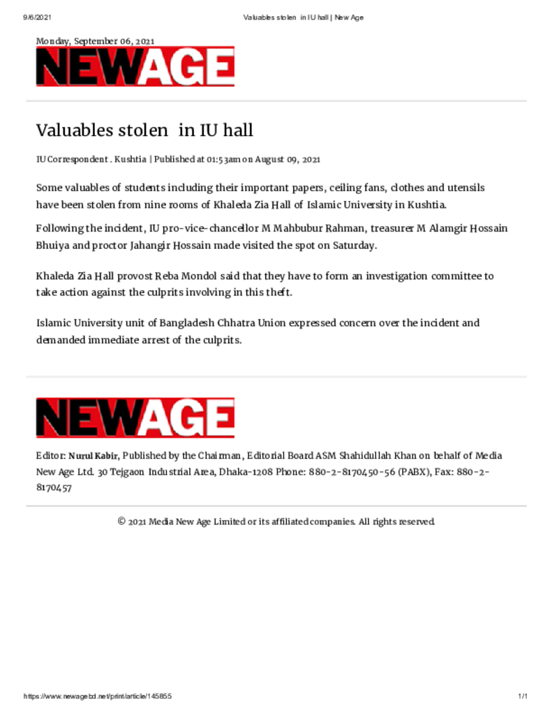 Valuables stolenĀ in IU hall _ New Age.pdf Published on 09 August 2021 Newspaper New Age Category Campus Terrorism Download