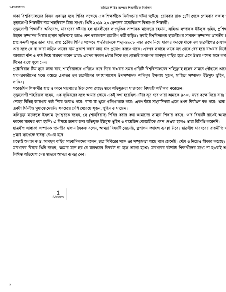 ঢাবিতে শিবির সন্দেহে শিক্ষার্থীকে নির্যাতন Published on 24 January 2023 Newspaper দৈনিক যুগান্তর Category Campus Terrorism General Education Download