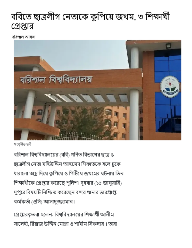 ববিতে ছাত্রলীগ নেতাকে কুপিয়ে জখম, ৩ শিক্ষার্থী গ্রেপ্তার.pdf