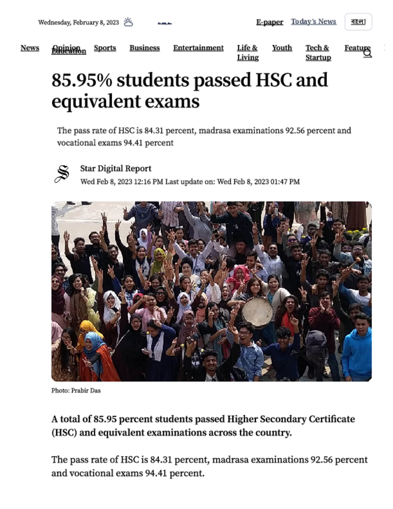 HSC results published_ pass rate in Dhaka board 87.8% _ The Daily Star.pdf Published on 08 February 2023 Newspaper The Daily Star Category Public Examination Public Examination HSC Download
