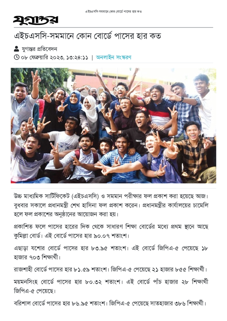 এইচএসসি-সমমানে কোন বোর্ডে পাসের হার কত.pdf Published on 08 February 2023 Newspaper দৈনিক যুগান্তর Category Public Examination Public Examination HSC Download