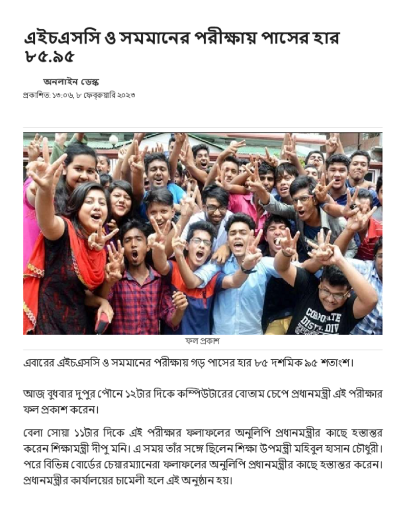 এইচএসসি ও সমমানের পরীক্ষায় পাসের হার ৮৫.৯৫.pdf Published on 08 February 2023 Newspaper দৈনিক জনকণ্ঠ Category Public Examination Public Examination HSC Download