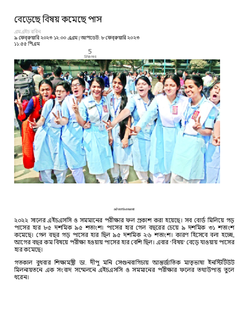 বেড়েছে বিষয় কমেছে পাস – Dainik Amader Shomoy.pdf Published on 09 February 2023 Newspaper দৈনিক আমাদের সময় Category Public Examination Public Examination HSC Download