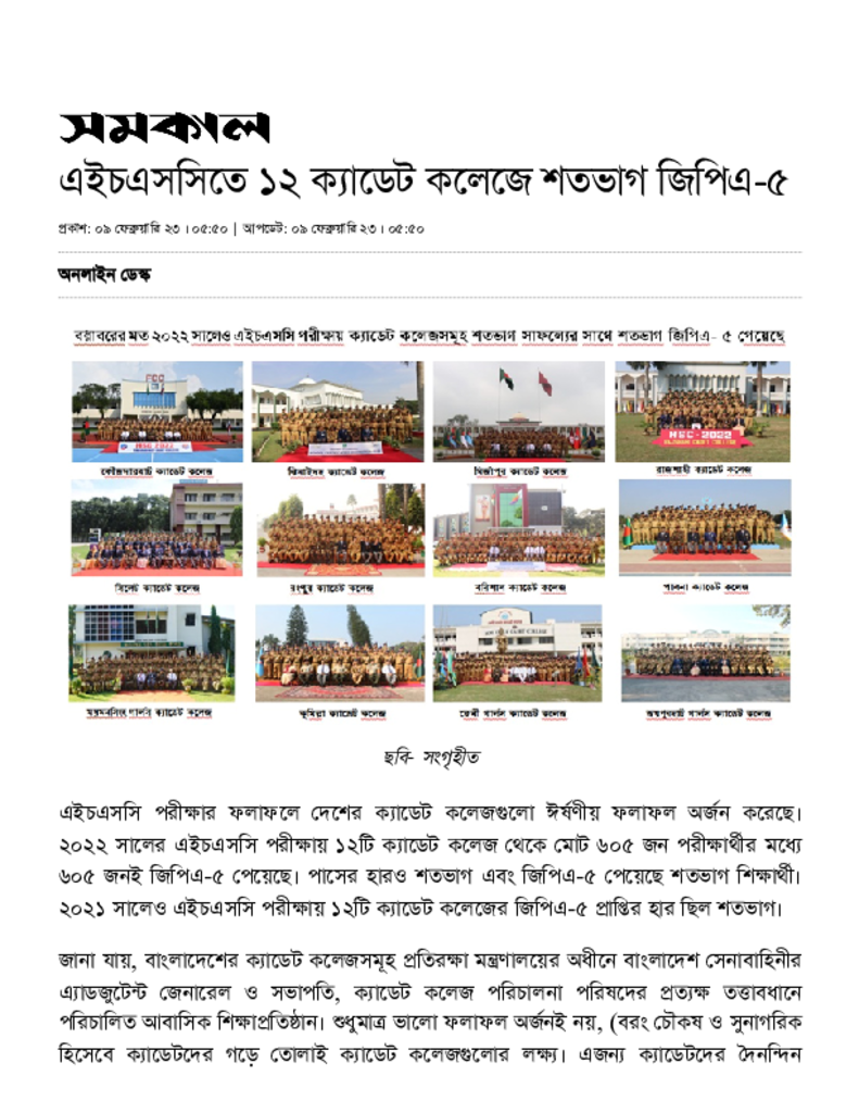 এইচএসসিতে ১২ ক্যাডেট কলেজে শতভাগ জিপিএ-৫.pdf Published on 09 February 2023 Newspaper দৈনিক সমকাল Category Public Examination Public Examination HSC Download
