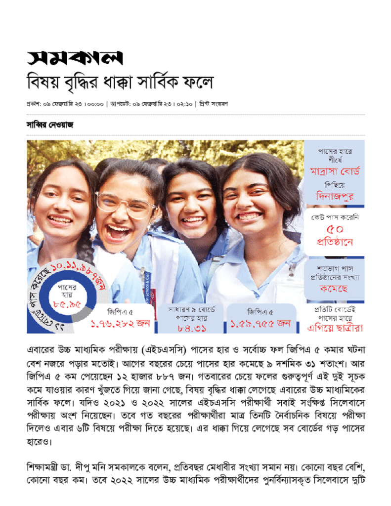 বিষয় বৃদ্ধির ধাক্কা সার্বিক ফলে.pdf Published on 09 February 2023 Newspaper দৈনিক সমকাল Category Public Examination Public Examination HSC Download