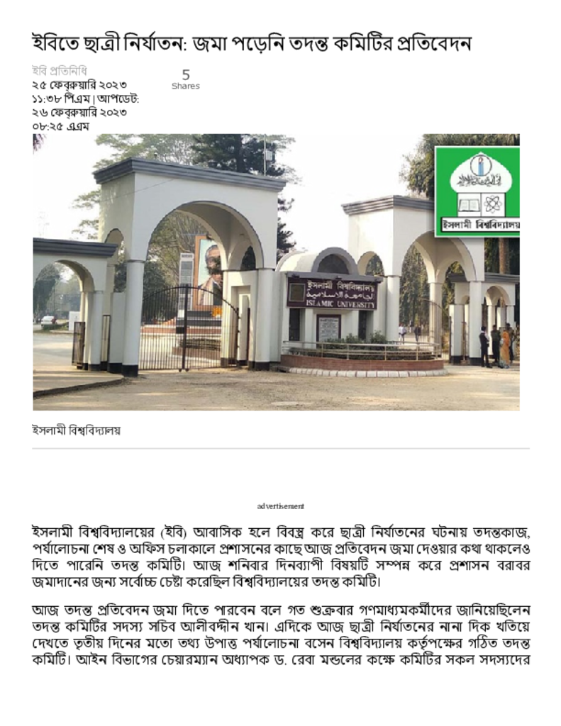 ইবিতে ছাত্রী নির্যাতন_ জমা পড়েনি তদন্ত কমিটির প্রতিবেদন – Dainik Amader Shomoy.pdf Published on 25 February 2023 Newspaper দৈনিক আমাদের সময় Category Campus Terrorism General Education Download