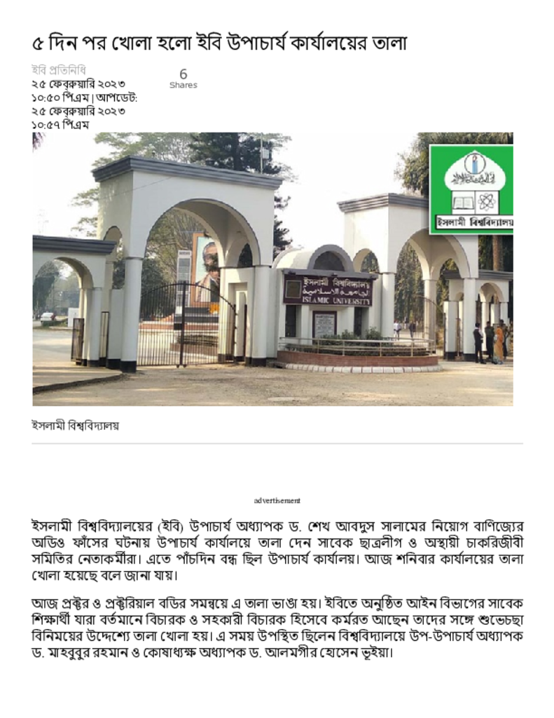 ৫ দিন পর খোলা হলো ইবি উপাচার্য কার্যালয়ের তালা – Dainik Amader Shomoy.pdf