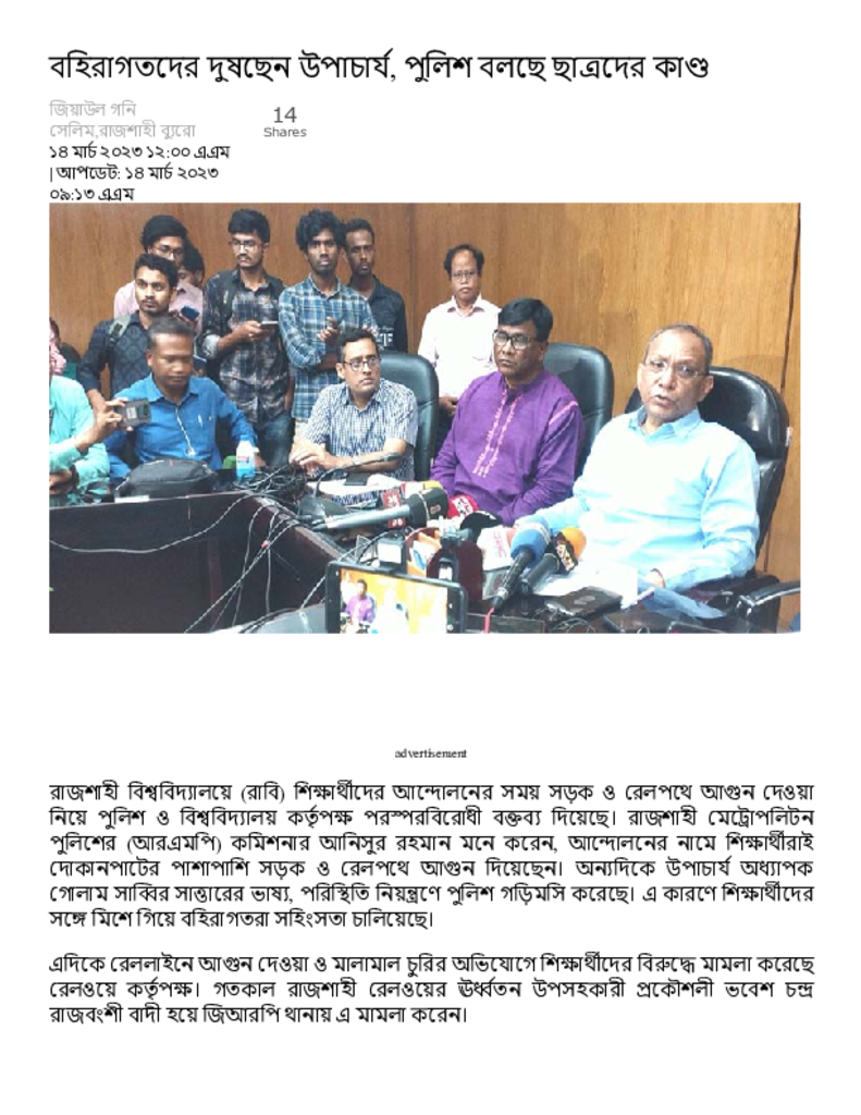 বহিরাগতদের দুষছেন উপাচার্য, পুলিশ বলছে ছাত্রদের কাণ্ড – Dainik Amader Shomoy.pdf Published on 14 March 2023 Newspaper দৈনিক আমাদের সময় Category Campus Terrorism General Education Download