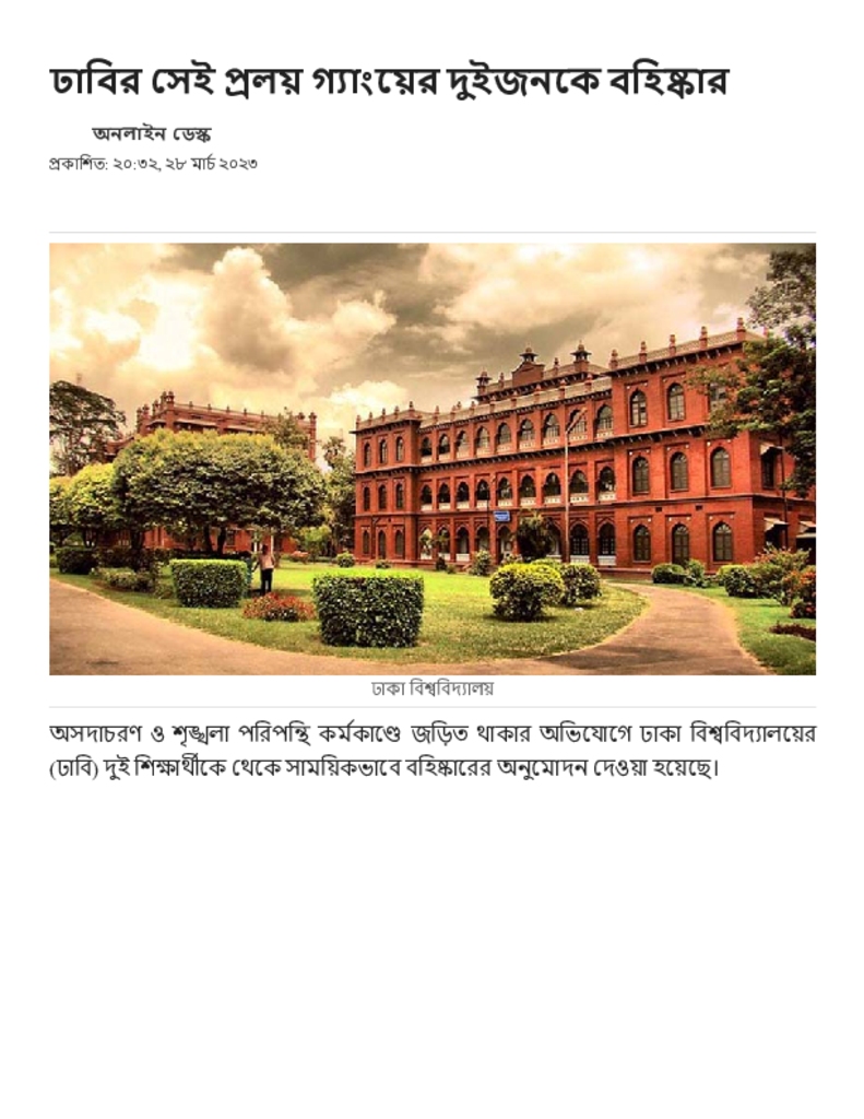 ঢাবির সেই প্রলয় গ্যাংয়ের দুইজনকে বহিষ্কার.pdf Published on 28 March 2023 Newspaper দৈনিক জনকণ্ঠ Category Campus Terrorism General Education Download