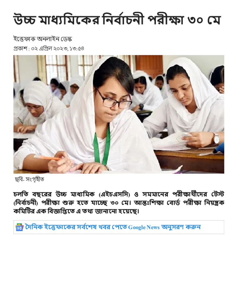 উচ্চ মাধ্যমিকের নির্বাচনী_ পরীক্ষা ৩০ মে.pdf Published on 02 April 2023 Newspaper দৈনিক ইত্তেফাক Category Public Examination Public Examination HSC Download