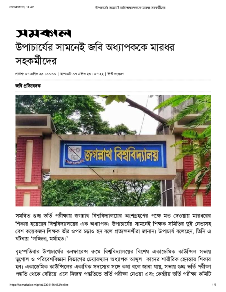 উপাচার্যের সামনেই জবি অধ্যাপককে মারধর সহকর্মীদের