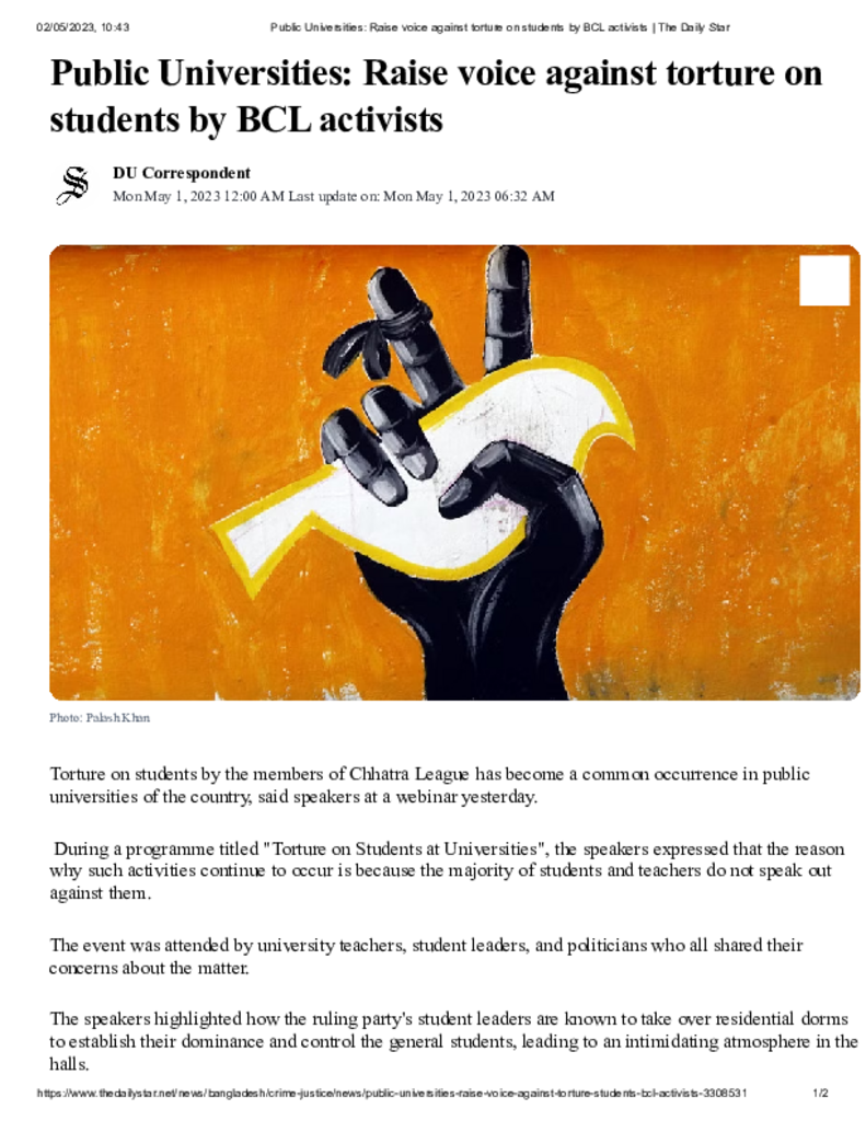 Public Universities_ Raise voice against torture on students by BCL activists _ The Daily Star