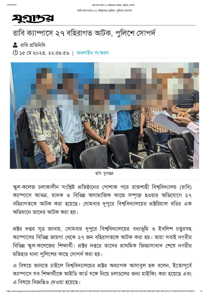 রাবি ক্যাম্পাসে ২৭ বহিরাগত আটক, পুলিশে সোপর্দ