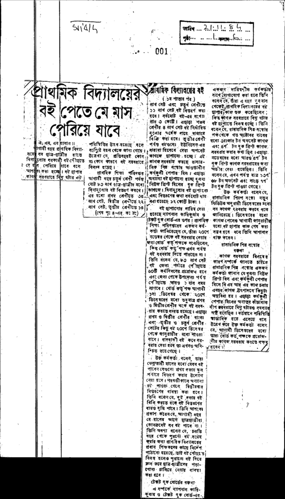 প্রাথমিক বিদ্যালয়ের বই পেতে মে মাস পেরিয়ে যাবে Published on Newspaper দৈনিক সংবাদ Category General Education Download
