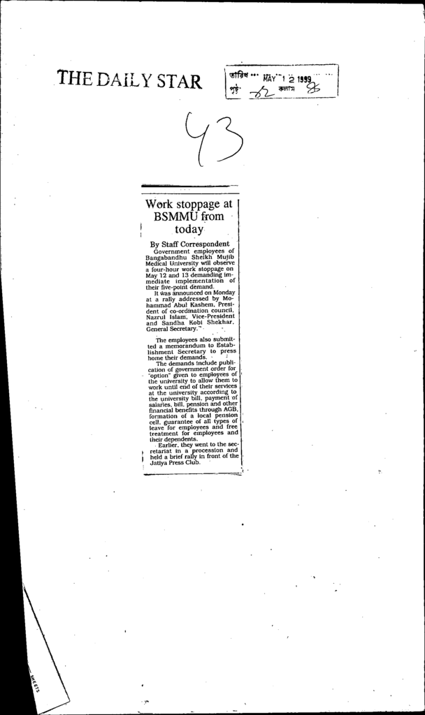 Work stoppage at bsmmu from today