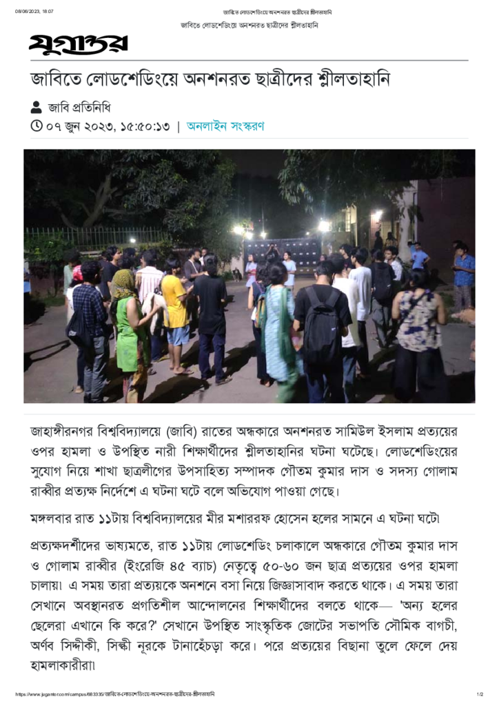 জাবিতে লোডশেডিংয়ে অনশনরত ছাত্রীদের শ্লীলতাহানি