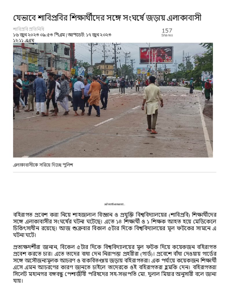যেভাবে শাবিপ্রবির শিক্ষার্থীদের সঙ্গে সংঘর্ষে জড়ায় এলাকাবাসী – Dainik Amader Shomoy.pdf Published on 16 June 2023 Newspaper দৈনিক আমাদের সময় Category Campus Terrorism Download