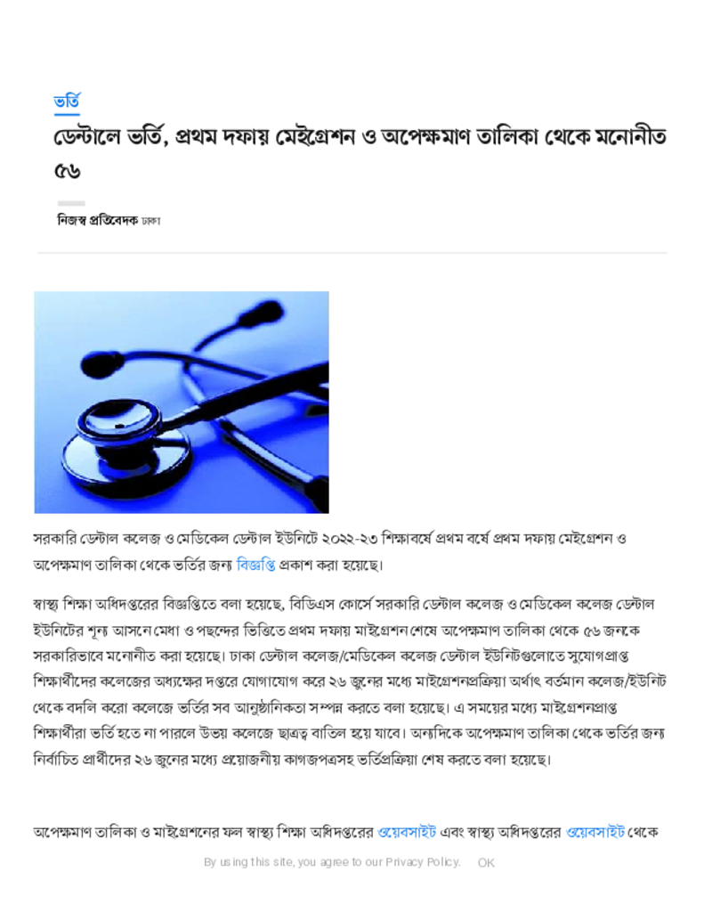 ডেন্টালে ভর্তি, প্রথম দফায় মেইগ্রেশন ও অপেক্ষমাণ তালিকা থেকে মনোনীত ৫৬.pdf Published on 17 June 2023 Newspaper দৈনিক প্রথম আলো Category Professional Education Professional Education Medical Download