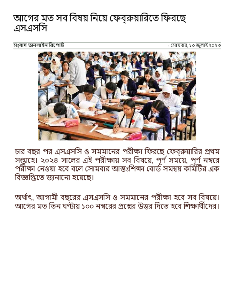 আগের মত সব বিষয় নিয়ে ফেব্রুয়ারিতে ফিরছে এসএসসি _ সংবাদ অনলাইন.pdf Published on 10 July 2023 Newspaper দৈনিক সংবাদ Category Public Examination Public Examination SSC Download