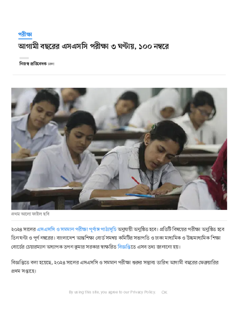 আগামী বছরের এসএসসি পরীক্ষা ৩ ঘণ্টায়, ১০০ নম্বরে.pdf Published on 10 July 2023 Newspaper দৈনিক প্রথম আলো Category Public Examination Public Examination SSC Download