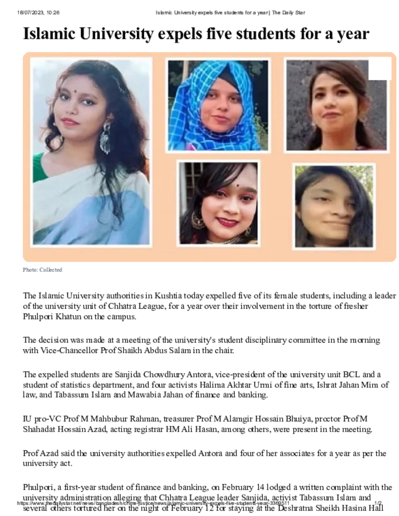 Islamic University expels five students for a year _ The Daily Star Published on 15 July 2023 Newspaper The Daily Star Category Campus Terrorism Download