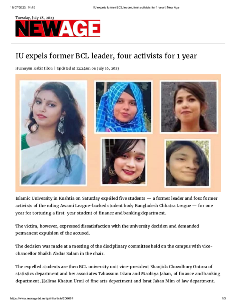 IU expels former BCL leader, four activists for 1 year _ New Age
