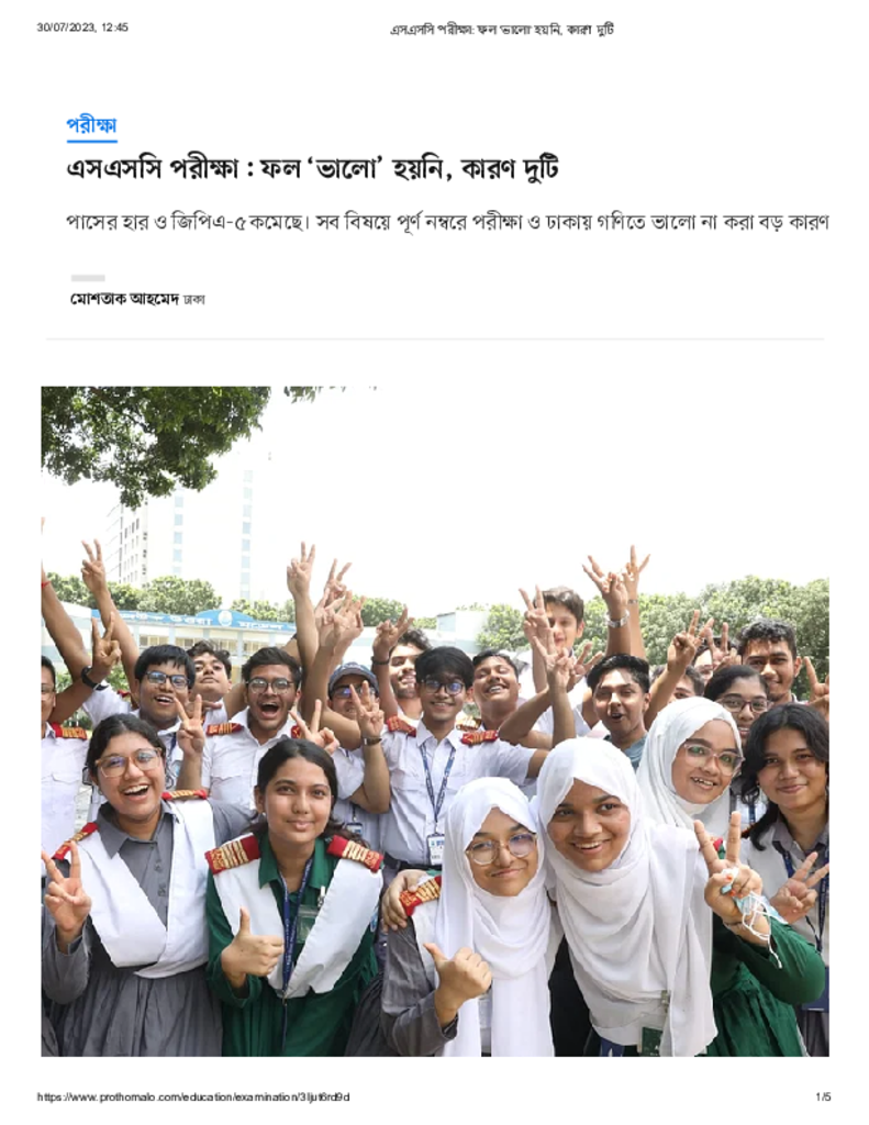 এসএসসি পরীক্ষা_ ফল ‘ভালো’ হয়নি, কারণ দুটি Published on 29 July 2023 Newspaper দৈনিক প্রথম আলো Category Personal Opinion / Discussion / Commentary Public Examination SSC Download