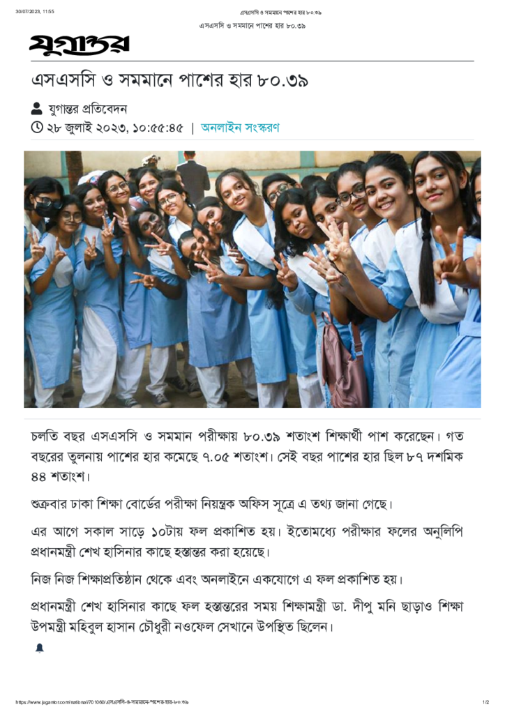 এসএসসি ও সমমানে পাশের হার ৮০.৩৯ Published on 28 July 2023 Newspaper দৈনিক যুগান্তর Category Public Examination Download