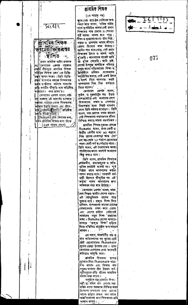 প্রাথমিক শিক্ষক ভবনের ভিত্তিপ্রস্তার স্থাপিত Published on Newspaper দৈনিক সংবাদ Category General Education Download