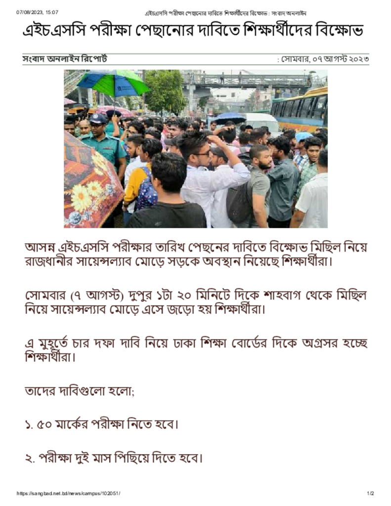 এইচএসসি পরীক্ষা পেছানোর দাবিতে শিক্ষার্থীদের বিক্ষোভ _ সংবাদ অনলাইন