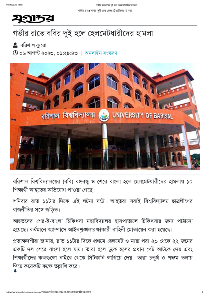 গভীর রাতে ববির দুই হলে হেলমেটধারীদের হামলা Published on 06 August 2023 Newspaper দৈনিক যুগান্তর Category Campus Terrorism Download