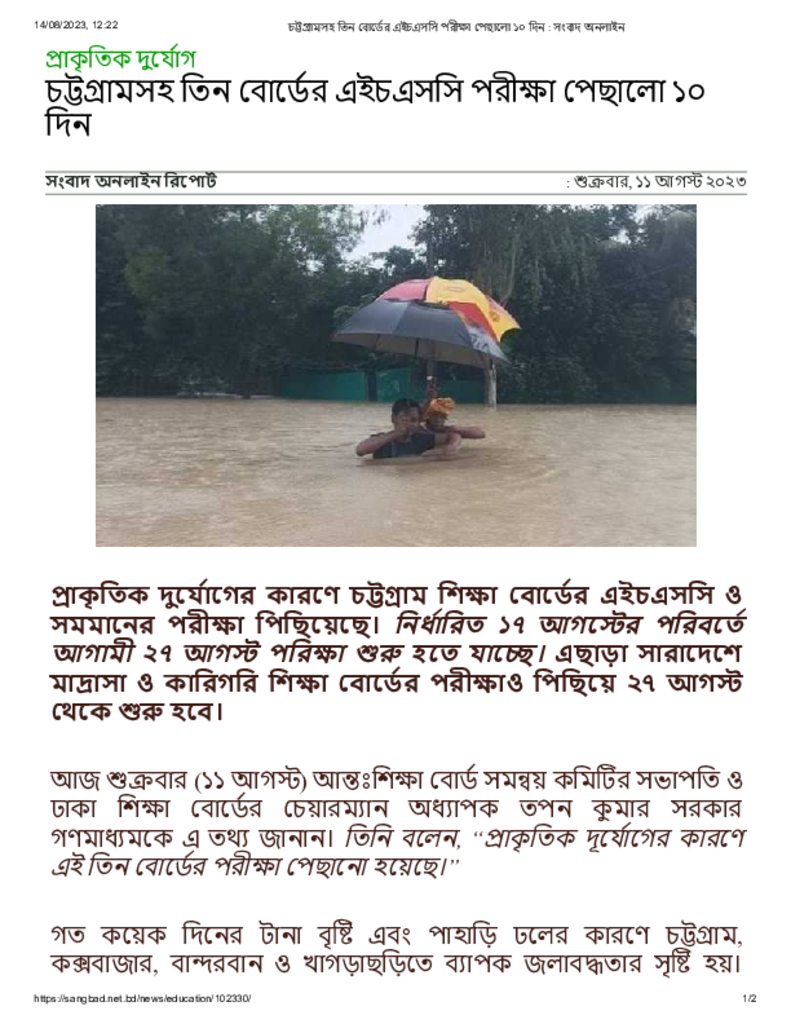 চট্টগ্রামসহ তিন বোর্ডের এইচএসসি পরীক্ষা পেছালো ১০ দিন _ সংবাদ অনলাইন Published on 12 August 2023 Newspaper দৈনিক সংবাদ Category Public Examination Public Examination HSC Download