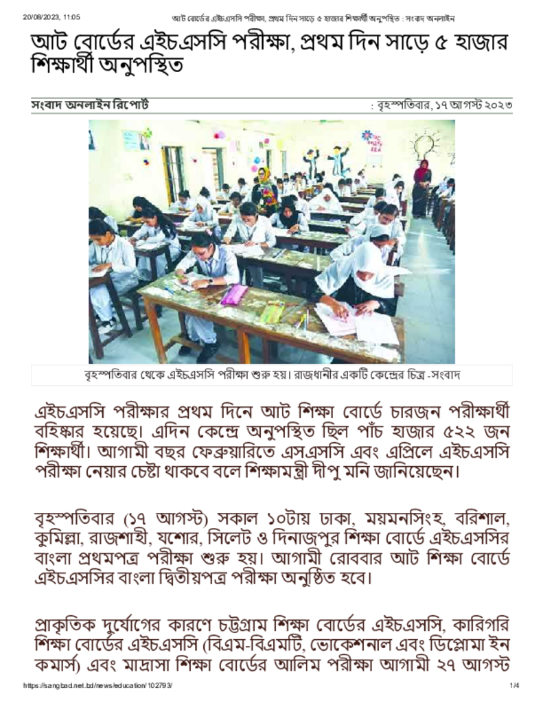 আট বোর্ডের এইচএসসি পরীক্ষা, প্রথম দিন সাড়ে ৫ হাজার শিক্ষার্থী অনুপস্থিত _ সংবাদ অনলাইন Published on 17 August 2023 Newspaper দৈনিক সংবাদ Category Public Examination Public Examination HSC Download